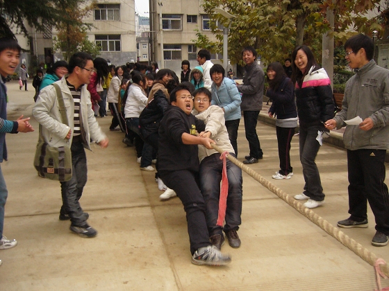 外語系為響應(yīng)教育部、團中央倡導(dǎo)學(xué)生開展冬季陽光體育運動的號召,讓同學(xué)們在運動中享受陽光,在陽光中享受快樂,在快樂中全面發(fā)展,以豐富同學(xué)們的課余生活,提高同學(xué)們的鍛煉熱情,11月19日下午舉辦了“第三屆冬季陽光體育健康運動活動”。活動經(jīng)過各班的預(yù)賽選拔于11月19日進行了各項決賽,本屆冬季陽光體育健康活動共設(shè)有跳棋、跳繩、踢毽子、乒乓球、拔河等 ,經(jīng)過兩天的角逐,2008級英語教育二班、張楠、劉瑤、姚嬌嬌、姜建黨、徐維玉等同學(xué)分別取得了拔河、跳棋等項目的第一名,其他學(xué)生分獲二、三名。學(xué)工部部長鄭樹青、系黨總支書記李巖、系學(xué)工辦主任任森龍、輔導(dǎo)員周靜為獲獎班級、個人頒發(fā)了獎狀和證書。鄭樹青部長勉勵大家積極參加校園文體活動,在活動中學(xué)會團結(jié),在活動中鍛煉能力,在活動中提高素質(zhì)。