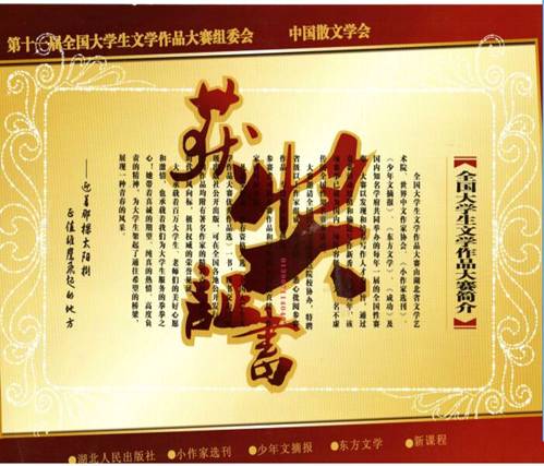 “全國大學(xué)生文學(xué)作品大賽”是湖北省文學(xué)藝術(shù)界聯(lián)合會聯(lián)合《小作家選刊》 、《少年文摘報(bào)》 、《東方文學(xué)》 、《成功》等多家知名雜志社聯(lián)合主辦,面向全國大學(xué)生的國家級文學(xué)賽事,一年一屆,深受光大大學(xué)生厚愛,參賽學(xué)生逐年增多。