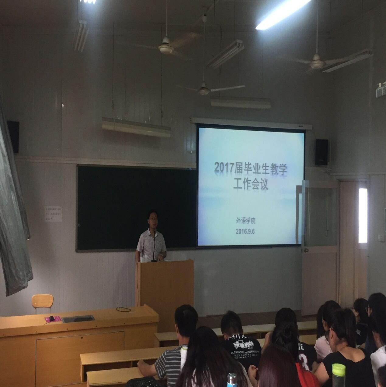 9月6日上午9時(shí),外語(yǔ)學(xué)院在6408教室召開了2017屆畢業(yè)生教學(xué)工作會(huì)議,重點(diǎn)推進(jìn)畢業(yè)生工作。張哲華副院長(zhǎng)、輔導(dǎo)員楊厚東老師參加并主持了此次會(huì)議。