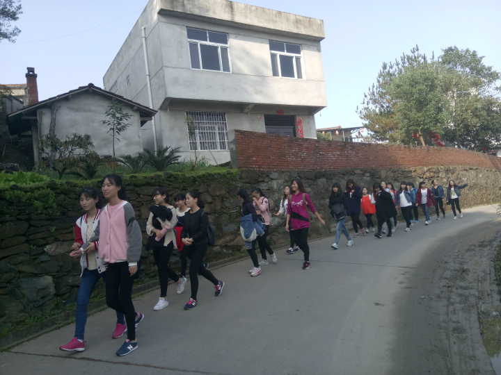 上午8點鐘所有成員開始集合,輕裝上陣,整齊的隊伍開始踏上了旅途。雖然路途遙遠,長達10公里,可大家都抱著吃苦耐勞的長征精神,沒有人抱怨,更無一人掉隊。途中,大家互相攙扶,互相鼓勵,加上沿途美景,不知不覺地到達了目的地——紅色革命圣地牛蹄嶺。這里矗立著一塊高19米的紀(jì)念碑,寓意著解放安康的第十九軍,碑座邊長5.5米,代表著第55師。這里曾是陜南的雄關(guān)要塞,歷來為兵家必爭之地,我們感受到了濃濃的歷史氣息和革命精神。站在這莊嚴(yán)的紀(jì)念碑前,我們不由得肅然起敬,懷著對革命烈士無比敬仰的心情,領(lǐng)略了牛蹄嶺戰(zhàn)役的背景和經(jīng)過,充分感受我們黨艱苦卓絕的戰(zhàn)斗歷程。
