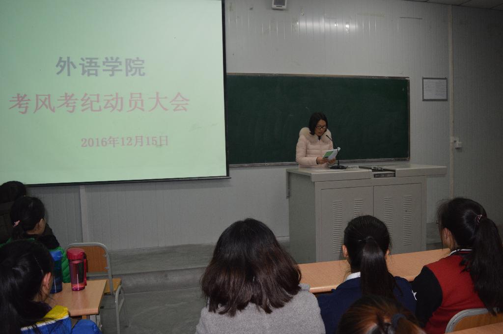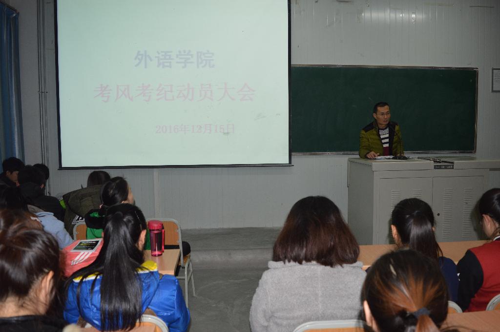 為了貫徹國家教育部考生考試誠信教育方針,結合我院學風建設部署,12月15日晚上外語學院在1016教室召開了本學期期末和本周六的全國大學英語四六級考試考風考紀動員大會。參加會議的有外語學院副院長張哲華副教授,輔導員常遠紅老師和全體2015級、2016級學生,會議由輔導員楊厚東主持。
