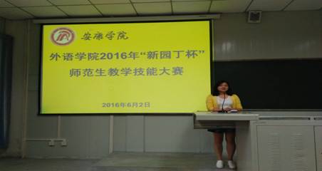 為促進(jìn)教師教育方向?qū)W生職業(yè)能力提升,努力培養(yǎng)合格中小學(xué)英語(yǔ)教師,6月2日我院2016年“新園丁杯”師范生教學(xué)技能大賽決賽在江南校區(qū)1022教室圓滿(mǎn)落幕。