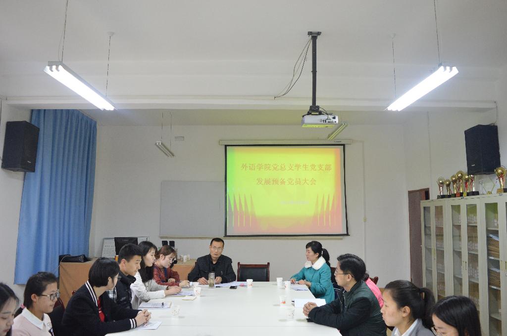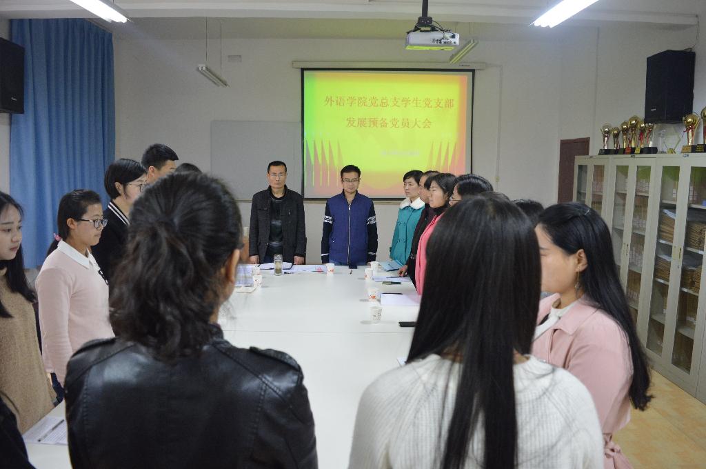 3月30日下午,外語學院黨總支學生黨支部在六號教學樓6109會議室召開了發(fā)展學生預備黨員大會。副院長張哲華、黨總支組織委員胡衛(wèi)衛(wèi)、黨總支紀委委員冀文輝、英語系主任王歡、日語系主任陳玉平,以及學生黨員、發(fā)展對象共19名師生參加了本次大會,會議由學生黨支部書記楊厚東主持。