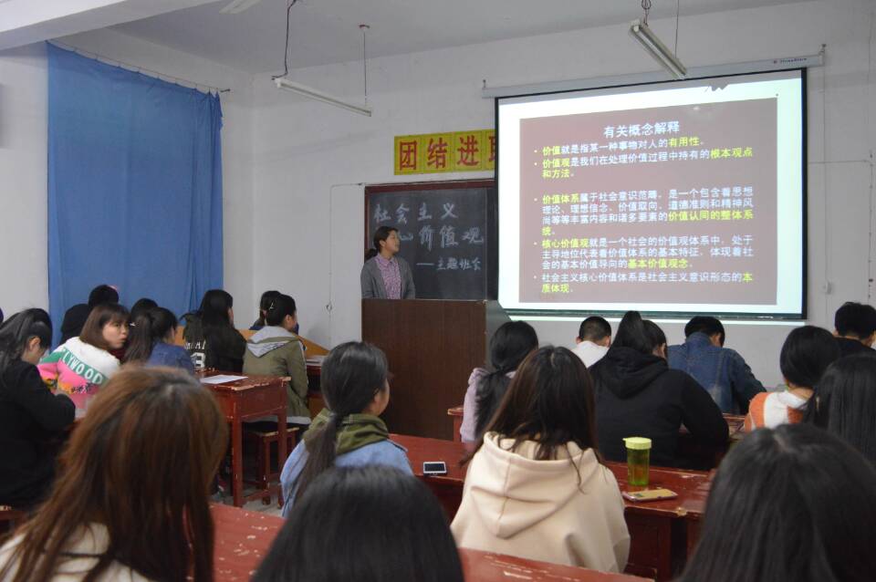 3月31日晚上,由安康學院外語學院2016級本科班組織承辦的“學習和踐行社會主義核心價值觀”主題班會于江南校區(qū)6號教學樓召開。此次主題班會旨在使同學們更好地了解“社會主義核心價值觀”的真正含義與內(nèi)容,更好地用行動踐行“社會主義核心價值觀”,爭做“社會主義核心價值觀”接班人。