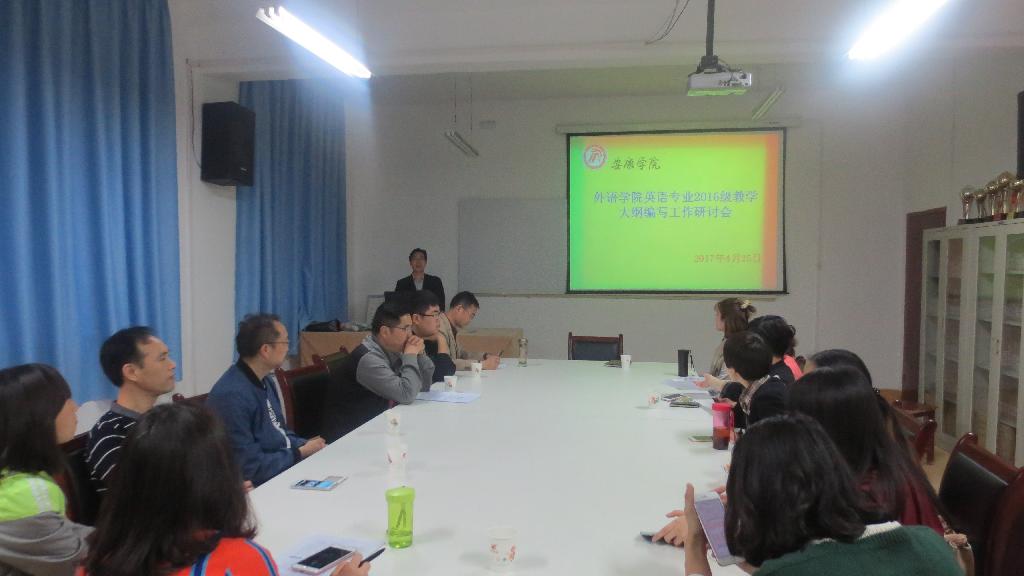 為更好地貫徹學校日前召開的“2016級教學大綱編制研討會”精神,順利啟動我院英語專業(yè)教學大綱的編制工作,4月26日下午,外語學院在6109會議室組織召開了英語專業(yè)2016級教學大綱編寫工作研討會。會議由副院長張哲華主持,英語專業(yè)全體教師參加會議。
