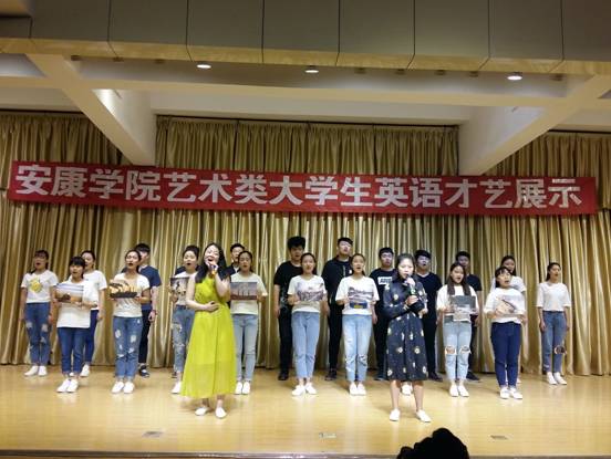 2017年5月5日19時(shí)30分,安康學(xué)院藝術(shù)類大學(xué)生英語(yǔ)才藝展示暨英語(yǔ)技能訓(xùn)練成果匯演在江北1401演藝廳舉行。教務(wù)處實(shí)踐教學(xué)科徐江濤科長(zhǎng)、大學(xué)英語(yǔ)教學(xué)部主任李繼平、藝術(shù)學(xué)院副院長(zhǎng)孫海洋、藝術(shù)類大學(xué)英語(yǔ)課程團(tuán)隊(duì)指導(dǎo)教師周凡雅、王瓊及藝術(shù)學(xué)院2016級(jí)學(xué)生觀看了演出。