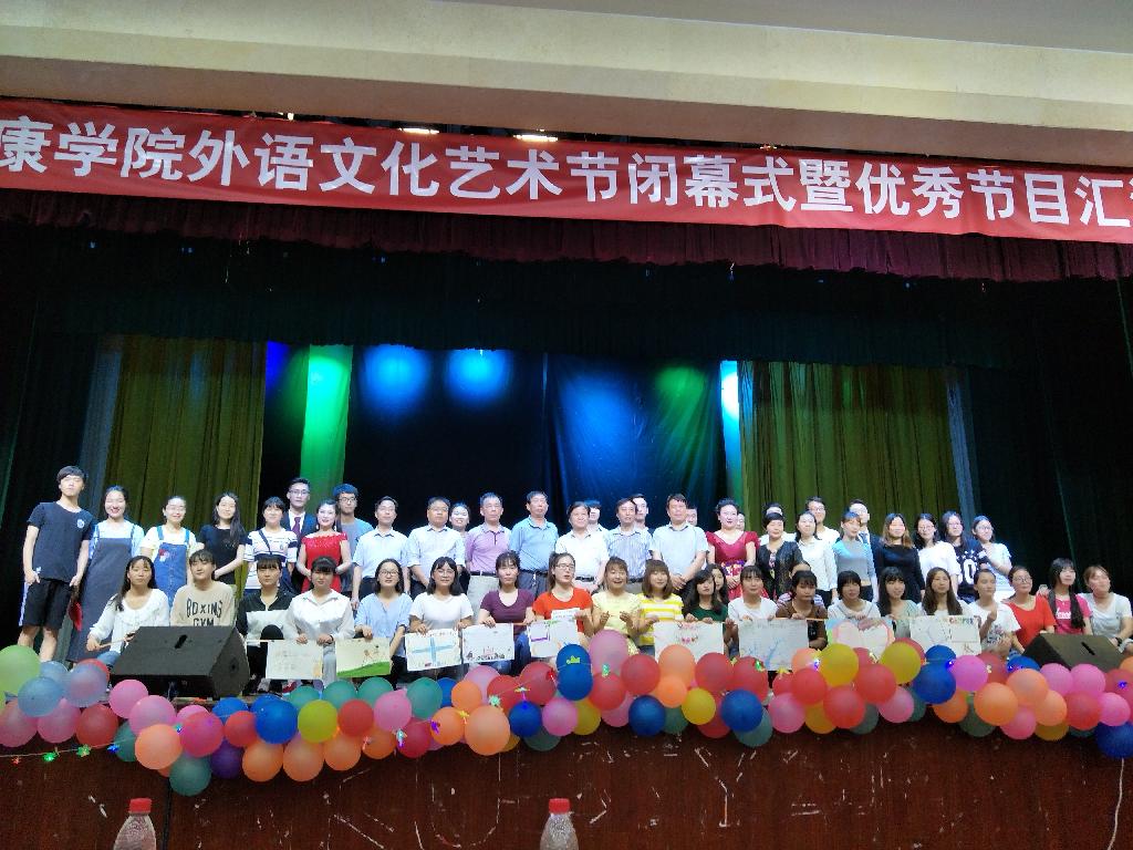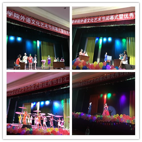 6月9日晚七點(diǎn),安康學(xué)院外語(yǔ)文化藝術(shù)節(jié)閉幕式暨優(yōu)秀節(jié)目匯演在江南校區(qū)大禮堂隆重舉行。出席本次閉幕式的有學(xué)校辦學(xué)顧問(wèn)黨天才教授、學(xué)校教學(xué)督導(dǎo)、教務(wù)處副處長(zhǎng)張紀(jì)生、部分二級(jí)學(xué)院書(shū)記及外語(yǔ)學(xué)院領(lǐng)導(dǎo)班子、教師及學(xué)校各專業(yè)八百余名學(xué)生。 外語(yǔ)文化藝術(shù)節(jié)閉幕式以影視社團(tuán)自制的微電影《盛開(kāi)吧,青春》拉開(kāi)帷幕,開(kāi)場(chǎng)少兒拉丁舞《花樣年華》帶領(lǐng)觀眾領(lǐng)略了從古典到現(xiàn)代變化多姿的舞蹈風(fēng)格;瘋狂口語(yǔ)社團(tuán)優(yōu)秀選手張丹的《魅力外語(yǔ)學(xué)院——The Charm of School of Foreign Language Studies》演講,結(jié)合影像方式,向在場(chǎng)師生介紹了獨(dú)具特色的外語(yǔ)學(xué)院魅力;英文歌曲大賽獲獎(jiǎng)學(xué)生李樂(lè)、楊家玉將非洲手鼓與經(jīng)典曲目《Lemon Tree》巧妙結(jié)合,表演清新自然;由藝術(shù)學(xué)院張慧老師和外語(yǔ)學(xué)院蔣京京同學(xué)合唱的《You Raise Me Up》讓大家在憧憬夢(mèng)想的同時(shí),領(lǐng)略到了美聲與通俗唱法合璧的音樂(lè)魅力;英語(yǔ)教學(xué)情景劇《遇見(jiàn)夏天》,題材新穎,寓意深刻,演繹絲絲入扣,讓觀眾耳目一新,感慨萬(wàn)千;外語(yǔ)學(xué)院青年教師王庚的一曲韓語(yǔ)歌曲《If You》更將晚會(huì)推上高潮;由英語(yǔ)專業(yè)學(xué)生自編自導(dǎo)的英文版《孔雀東南飛》話劇將中西文化有機(jī)結(jié)合;最后晚會(huì)在歌曲《Can't Take My Eyes Off You》中完美落幕。