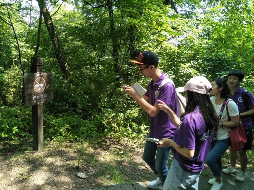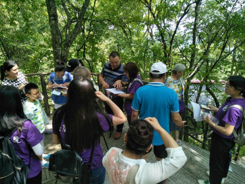 上午7點(diǎn)整,十三名實(shí)踐學(xué)生在輔導(dǎo)員老師常遠(yuǎn)紅、專業(yè)指導(dǎo)老師鄧雪玲的帶領(lǐng)下準(zhǔn)時(shí)從學(xué)校出發(fā)前往南宮山實(shí)踐點(diǎn)。到達(dá)嵐皋縣南宮山大酒店后,實(shí)踐團(tuán)隊(duì)與支持本次活動(dòng)的南宮山景區(qū)負(fù)責(zé)人李寧會(huì)面。隨后,李寧帶領(lǐng)實(shí)踐團(tuán)隊(duì)前往南宮山景區(qū),在南宮山景區(qū)門前,李寧首先介紹了本次活動(dòng)的路線及安全注意事項(xiàng):本次活動(dòng)從北大門出發(fā),途徑二郎坪、千步階梯、觀音望海、玻璃棧道、真身殿及飛拉達(dá)攀巖等景點(diǎn),李寧強(qiáng)調(diào)小環(huán)線路線路途陡峭,希望實(shí)踐對(duì)員們注意自身安全,服從帶隊(duì)老師安排。隨后,實(shí)踐隊(duì)員們開(kāi)始了本次的實(shí)踐活動(dòng)。隊(duì)員們沿著景區(qū)路線,積極收集公示語(yǔ)標(biāo)識(shí)牌及英譯的第一手資料,負(fù)責(zé)人李寧也積極的為實(shí)踐隊(duì)員們講解各個(gè)景點(diǎn)的歷史背景,同學(xué)們虛心求教,不懂就問(wèn),為接下來(lái)的英譯工作做準(zhǔn)備。隊(duì)員們也對(duì)景區(qū)游客及景區(qū)工作人員進(jìn)行公示語(yǔ)英譯語(yǔ)言規(guī)范性的問(wèn)卷調(diào)查,當(dāng)?shù)赜慰蛯?duì)本次的社會(huì)實(shí)踐活動(dòng)非常支持,積極配合問(wèn)卷調(diào)查。隊(duì)員們還收集了游客對(duì)標(biāo)識(shí)語(yǔ)英譯的準(zhǔn)確性和規(guī)范性的意見(jiàn)和建議。