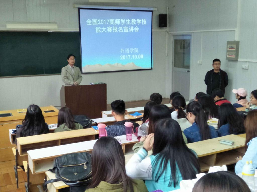 為了提高我院師范生教育教學(xué)與教師職業(yè)能力,鼓勵(lì)更多師范生參加全國(guó)2017高師學(xué)生教師技能大賽,10月9、10日,我院分別在6405教室舉辦“全國(guó)2017高師學(xué)生教師技能大賽”報(bào)名宣講會(huì)。學(xué)院副院長(zhǎng)張哲華、教師教育教學(xué)團(tuán)隊(duì)教師趙龍及2015級(jí)、2016級(jí)師范生和2017級(jí)專升本學(xué)生參加了此次會(huì)議。