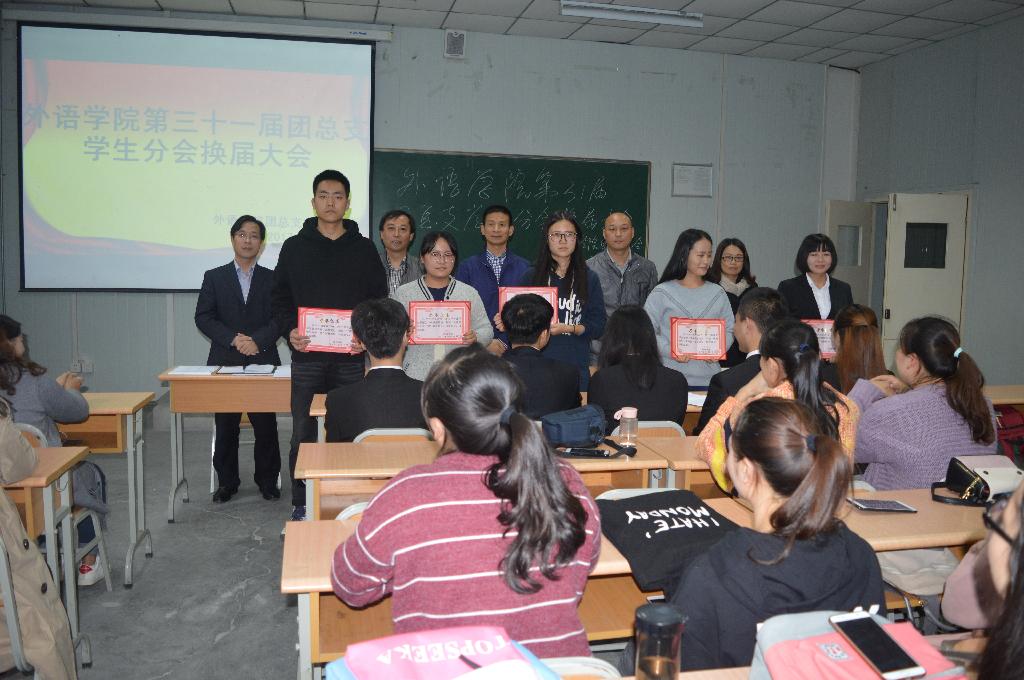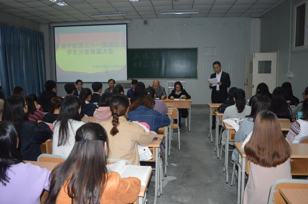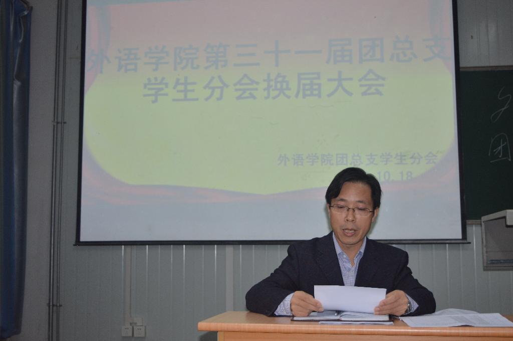 10月18日下午,外語(yǔ)學(xué)院第三十一屆團(tuán)總支、學(xué)生分會(huì)換屆大會(huì)在江南校區(qū)1016教室隆重舉行。外語(yǔ)學(xué)院院長(zhǎng)哈紅光、黨總支書(shū)記郭家平、副院長(zhǎng)張哲華、團(tuán)總支書(shū)記郝禮軍、輔導(dǎo)員常遠(yuǎn)紅以及新一屆團(tuán)總支、學(xué)生分會(huì)當(dāng)選干部和全院各班班團(tuán)干部共120余人參加大會(huì)。大會(huì)由郝禮軍主持。