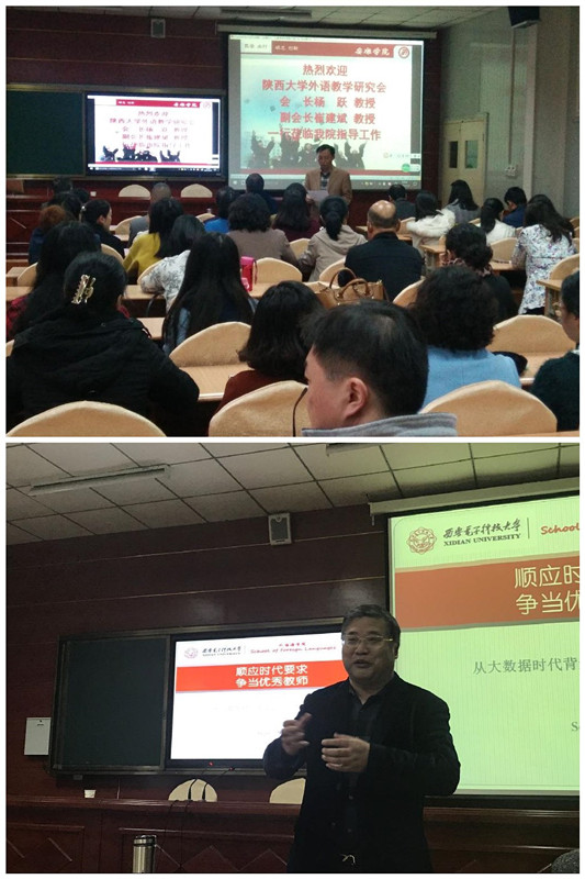 11月1日下午,陜西高等學(xué)校大學(xué)外語教學(xué)研究會會長楊躍教授應(yīng)邀來我校外語學(xué)院做了題為“順應(yīng)時代要求 爭當(dāng)優(yōu)秀教師”的學(xué)術(shù)報告。報告在1018教室舉行,外語學(xué)院全體教師和2016級學(xué)生參加了報告會。