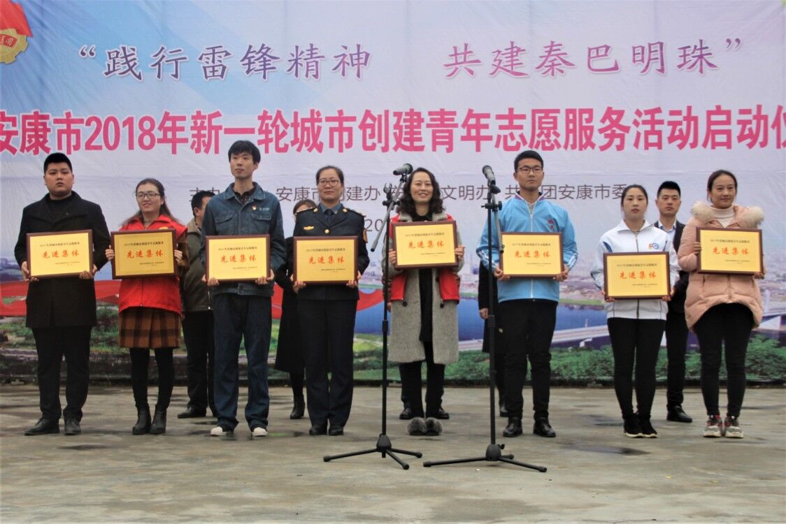 活動(dòng)儀式上,共青團(tuán)安康市委少先隊(duì)總輔導(dǎo)員羅小梅宣讀了安康市雙創(chuàng)指揮部辦公室、共青團(tuán)安康市委《關(guān)于表彰安康市城市創(chuàng)建青年志愿服務(wù)先進(jìn)集體、先進(jìn)個(gè)人的決定》。我院團(tuán)總支青年志愿者服務(wù)團(tuán)隊(duì)榮獲“先進(jìn)集體”稱號(hào)。