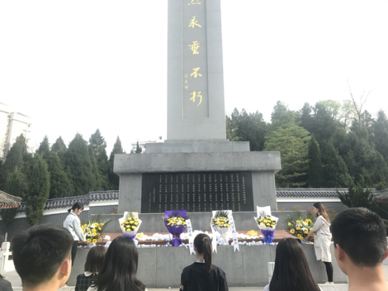 在革命紀念碑前,同學(xué)們鞠躬默哀、獻花,表達了對革命先烈的深切緬懷和崇高敬意。新加入中國共產(chǎn)黨的老師和同學(xué)整齊肅立,懷著沉重的心情追思革命先烈,面對革命先烈宣誓。