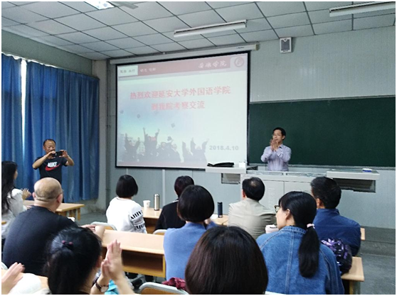 為加強(qiáng)兄弟高校交流,提高人才培養(yǎng)質(zhì)量,為學(xué)生搭建考研平臺,4月10日,延安大學(xué)外國語學(xué)院董振文書記一行五人來我院交流考察,我院院長哈紅光、總支書記郭家平、副院長張哲華接待了來訪客人,雙方就學(xué)科專業(yè)建設(shè)、師資培養(yǎng)、兼職導(dǎo)師聘任等問題進(jìn)行了深入探討。