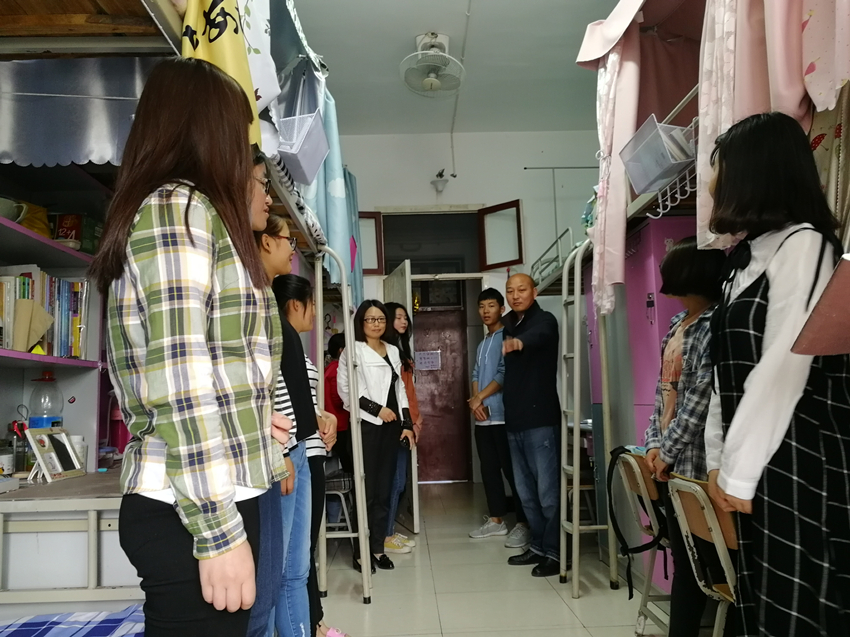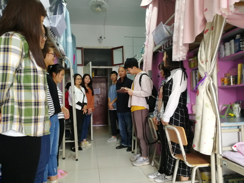 4月18號,郝禮軍、常遠紅帶領(lǐng)學(xué)生會干部對學(xué)生宿舍進行排查,督促學(xué)生做好宿舍內(nèi)務(wù)衛(wèi)生,向?qū)W生強調(diào)宿舍防火,防電、防盜等的安全,提醒學(xué)生按時就寢,嚴禁校外住宿。輔導(dǎo)員和學(xué)生親切交流,了解他們的生活和學(xué)習情況,提醒注意宿舍安全事項。對于內(nèi)務(wù)不及格的宿舍都相應(yīng)做了登記,要求整改,日后將進行復(fù)查工作。從本次的檢查情況看,我院學(xué)生的宿舍衛(wèi)生總體情況良好,暫無發(fā)現(xiàn)違章使用大功率用電器及學(xué)生外宿的情況。
