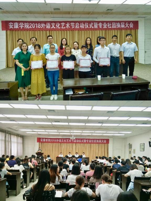 5月16日下午,安康學(xué)院2018外語(yǔ)文化藝術(shù)節(jié)暨專(zhuān)業(yè)社團(tuán)換屆大會(huì)在江南校區(qū)圖書(shū)館6樓報(bào)告廳拉開(kāi)帷幕。學(xué)校團(tuán)委書(shū)記李光梓、外語(yǔ)學(xué)院院長(zhǎng)哈紅光、書(shū)記郭家平、副院長(zhǎng)張哲華等出席活動(dòng);外語(yǔ)學(xué)院專(zhuān)業(yè)社團(tuán)指導(dǎo)老師及15、16級(jí)學(xué)生出席啟動(dòng)儀式,現(xiàn)場(chǎng)氣氛熱烈。
