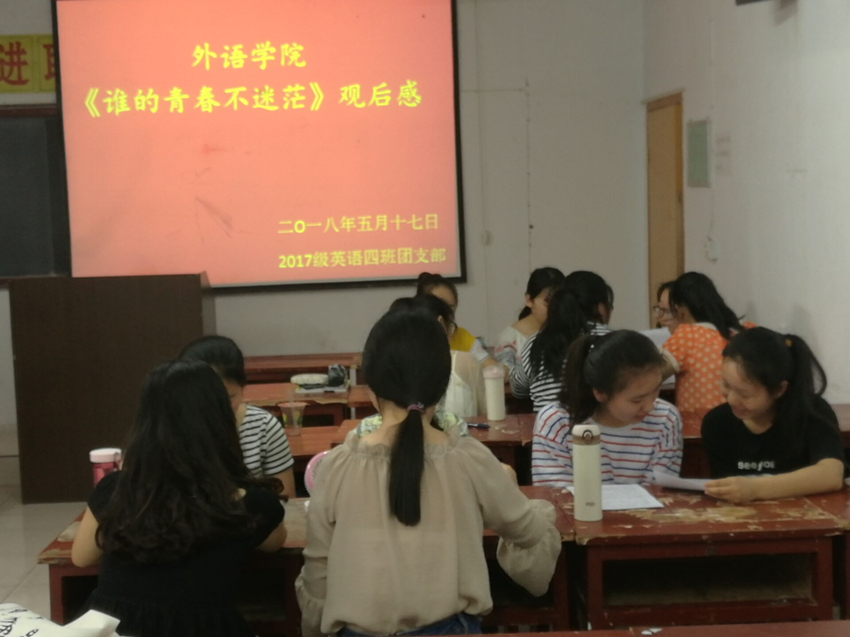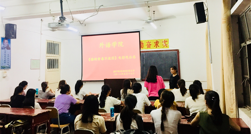 2018年5月17日晚,外語(yǔ)學(xué)院組織一、二年級(jí)各班同學(xué)在本班教室開(kāi)展電影《誰(shuí)的青春不迷茫》和“鯨騎士”觀后感心得交流會(huì)。兩部電影以青春為題材,以每個(gè)人的青春歲月為基礎(chǔ),每個(gè)學(xué)生以個(gè)人從電影中所感悟出的清晰的哲理及人生態(tài)度相互交流分享,大家暢所欲言,在回顧自己青春歲月流逝之快的同時(shí)也對(duì)未來(lái)的日子充滿了憧憬與期待。從而讓同學(xué)們更好的珍惜自己的青春年華。