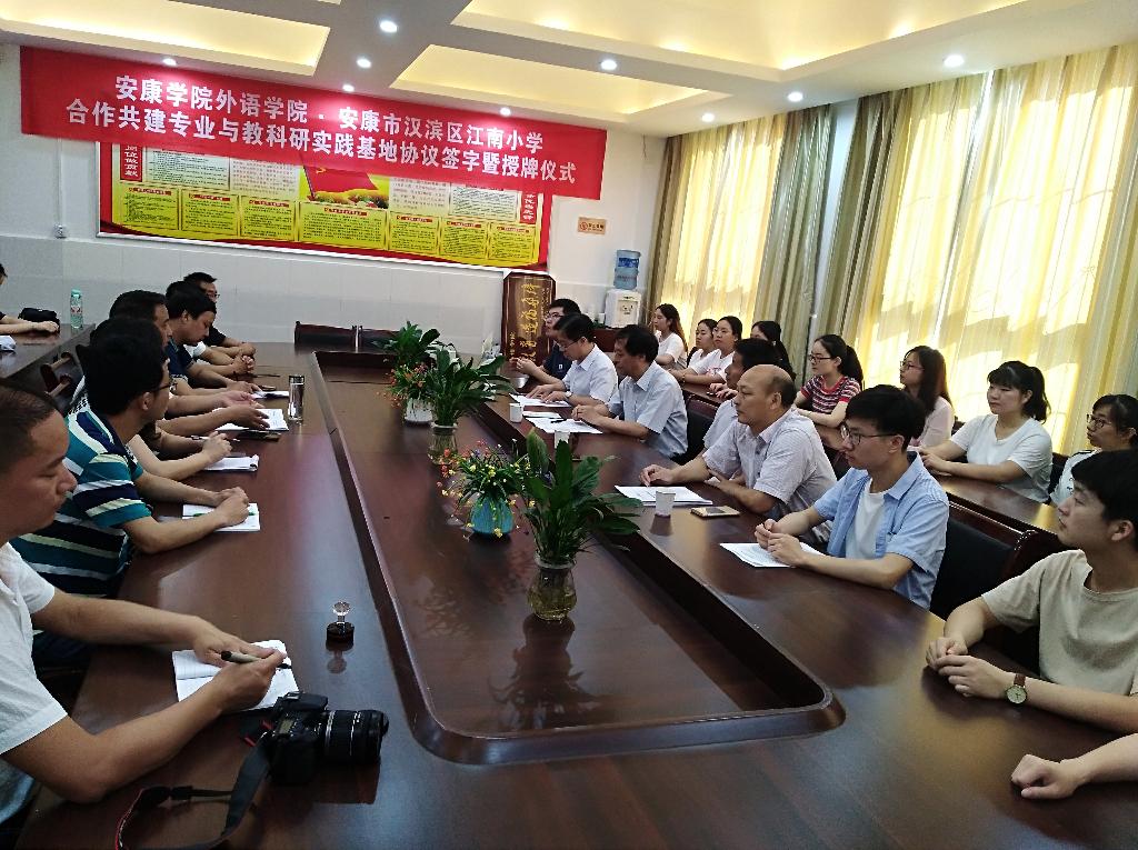 儀式上,外語學院院長哈紅光與江南小學校長余維賢簽訂了共建“安康學院外語學院教科研實踐基地”協(xié)議和院校共建專業(yè)協(xié)議。