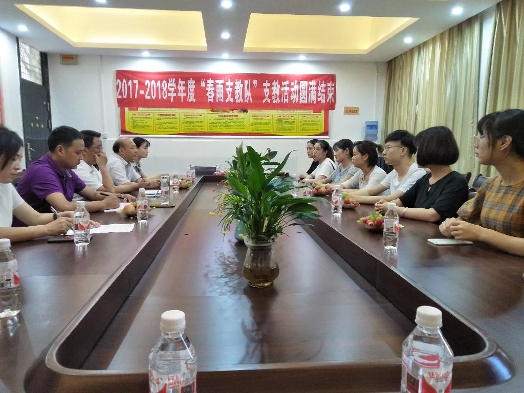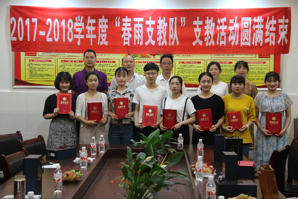 6月22日下午,外語(yǔ)學(xué)院學(xué)生黨支部、團(tuán)總支2017-2018學(xué)年度“春雨支教隊(duì)”支教活動(dòng)總結(jié)會(huì)在江南小學(xué)舉行。江南小學(xué)校長(zhǎng)余維賢、黨支部書記修治安、副校長(zhǎng)張玲玲、外語(yǔ)學(xué)院學(xué)生黨支部書記、團(tuán)總支書記郝禮軍以及“春雨支教服務(wù)隊(duì)”全體成員參加了總結(jié)會(huì)。會(huì)議由江南小學(xué)副校長(zhǎng)張玲玲主持。