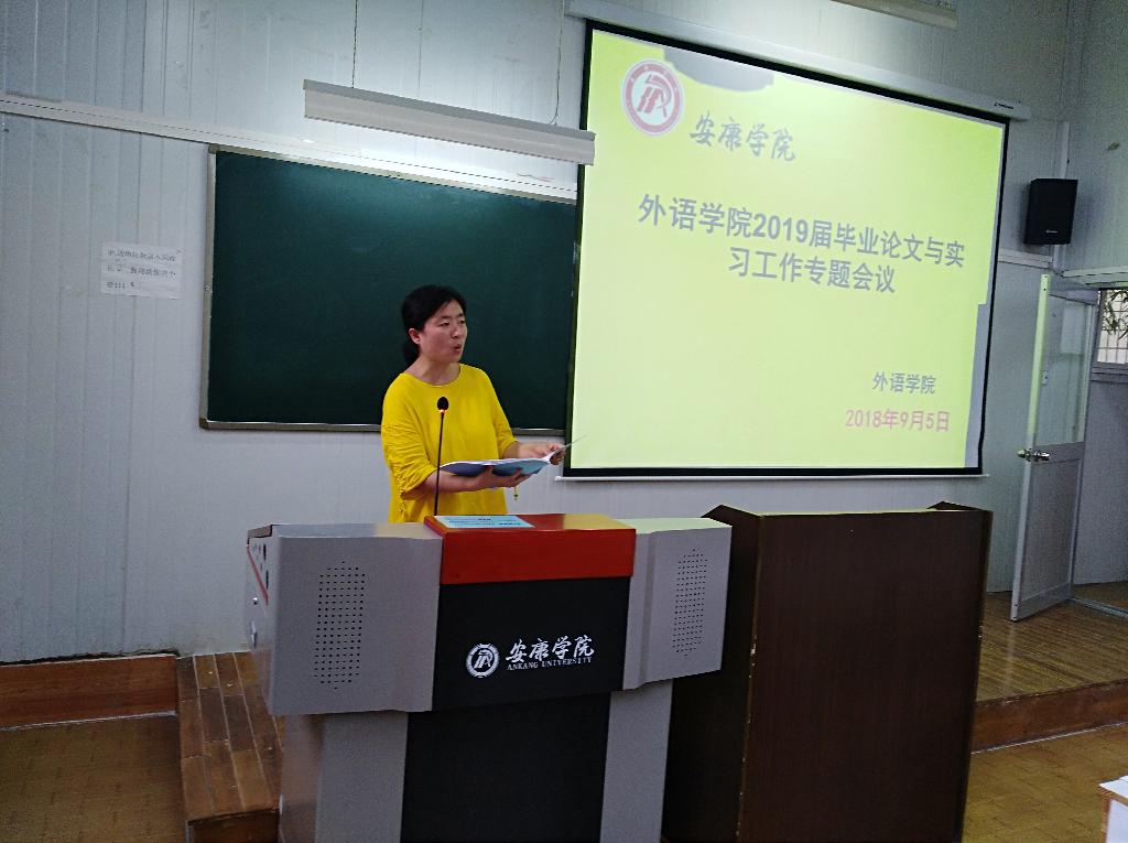 首先,張哲華宣讀了《外語學(xué)院關(guān)于加強畢業(yè)論文(設(shè)計)管理的指導(dǎo)意見》,他強調(diào),畢業(yè)論文是人才培養(yǎng)中十分重要的實踐教學(xué)環(huán)節(jié)。畢業(yè)論文撰寫畢業(yè)論文周期長,任務(wù)重,需要導(dǎo)師和學(xué)生需要付出心血。他從語言、論文結(jié)構(gòu)、文獻、格式等方面總結(jié)了往屆畢業(yè)論文存在的十大問題,強調(diào)了關(guān)于畢業(yè)論文的各項規(guī)章制度,并對畢業(yè)論文改革事宜做了說明。蔡婷婷對2019屆本科畢業(yè)論文的組織管理和時間進度進行了安排。