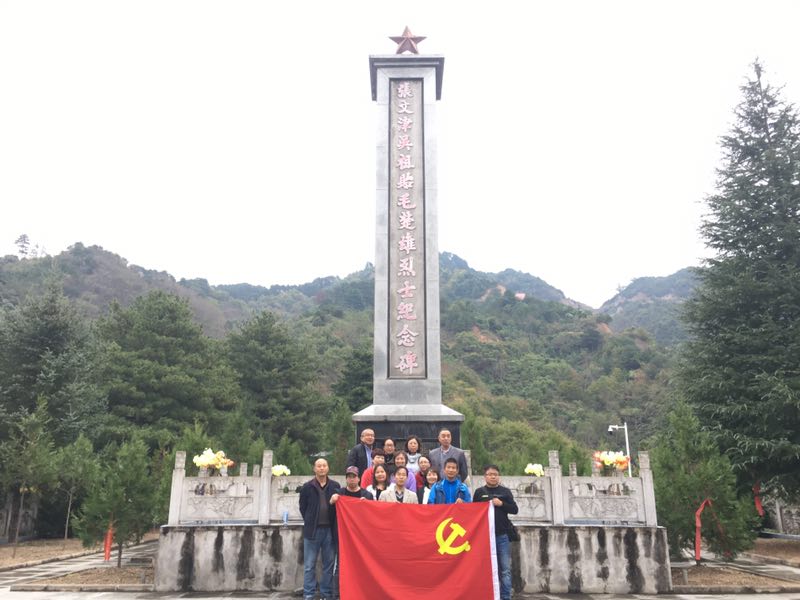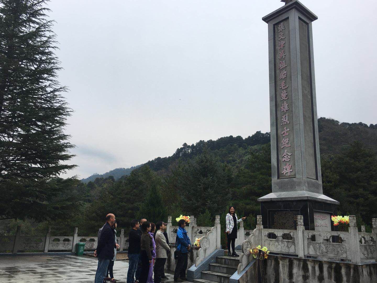 2018年10月13日中午,經(jīng)過4個半小時車程,外語學(xué)院黨總支(教工一支部、二支部黨員教師以及學(xué)生支部黨員)來到寧陜縣江口鎮(zhèn)烈士陵園。在革命先烈張文津、吳祖貽、毛楚雄三烈士紀(jì)念碑前,全體黨員向烈士默哀,瞻仰烈士紀(jì)念碑,參觀烈士紀(jì)念館。