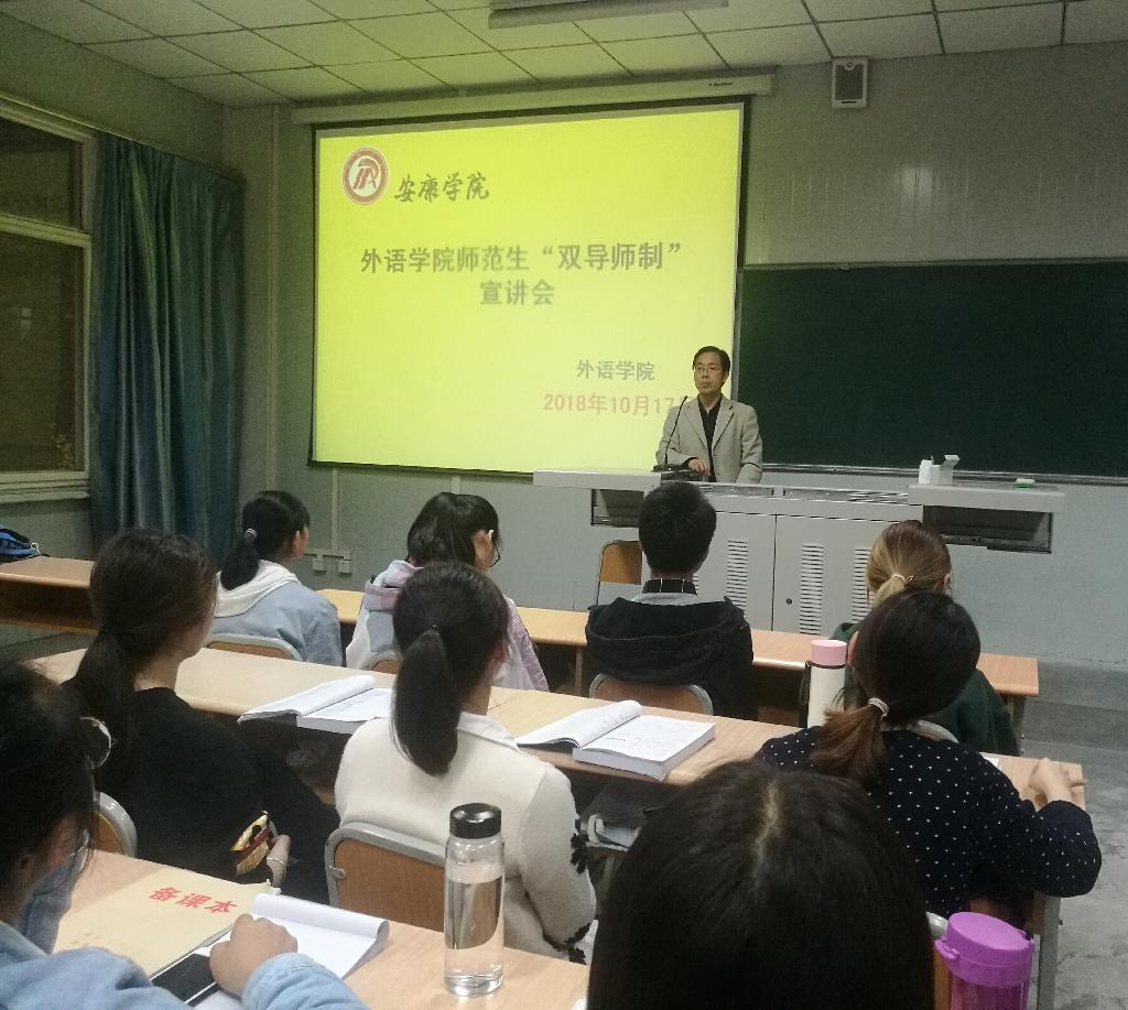 王歡老師宣讀了《外語學院關于開展“雙導師制“遴選師范生的工作安排》并就其中的重點內容進行了解釋。師范生們還就相關問題進行了咨詢。