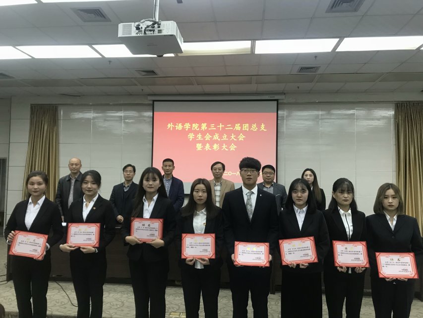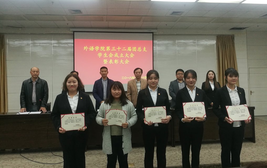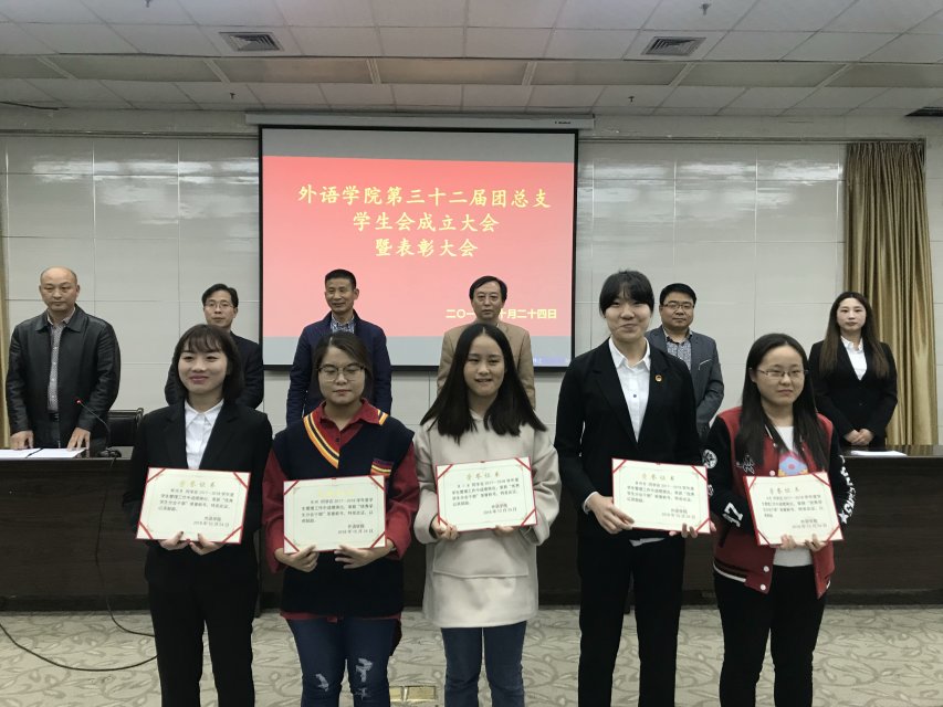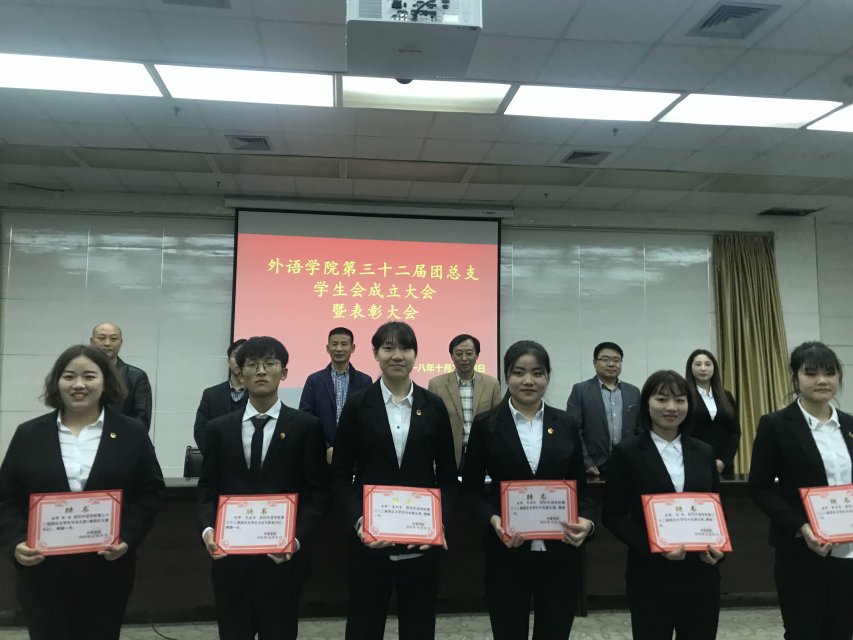 外語學(xué)院領(lǐng)導(dǎo)為第31屆團(tuán)總支、學(xué)生分會優(yōu)秀學(xué)生干部頒發(fā)榮譽(yù)證書,為第32屆團(tuán)總支、學(xué)生分會干部頒發(fā)聘書。