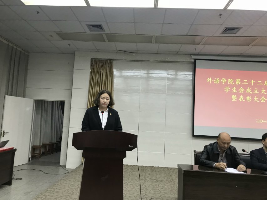院長哈紅光宣讀外語學(xué)院第31屆團(tuán)總支、學(xué)生分會優(yōu)秀學(xué)生干部表彰決定和第32屆團(tuán)總支、學(xué)生會分會成員名單。