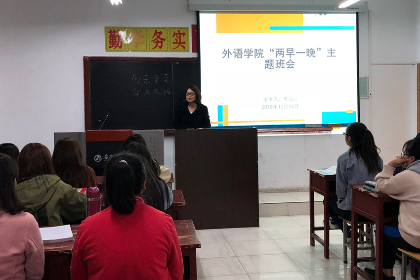9月26日,外語學(xué)院學(xué)工辦召開專題會議,團(tuán)總支、學(xué)生分會干部以及各班班長和團(tuán)支部書記參加大會。會上傳達(dá)了學(xué)校《關(guān)于在學(xué)生中持續(xù)開展“兩早一晚”活動的通知》精神,要求全院學(xué)生干部積極行動起來,以身作則做好模范帶頭作用,并全面組織和落實(shí)好此項(xiàng)活動。