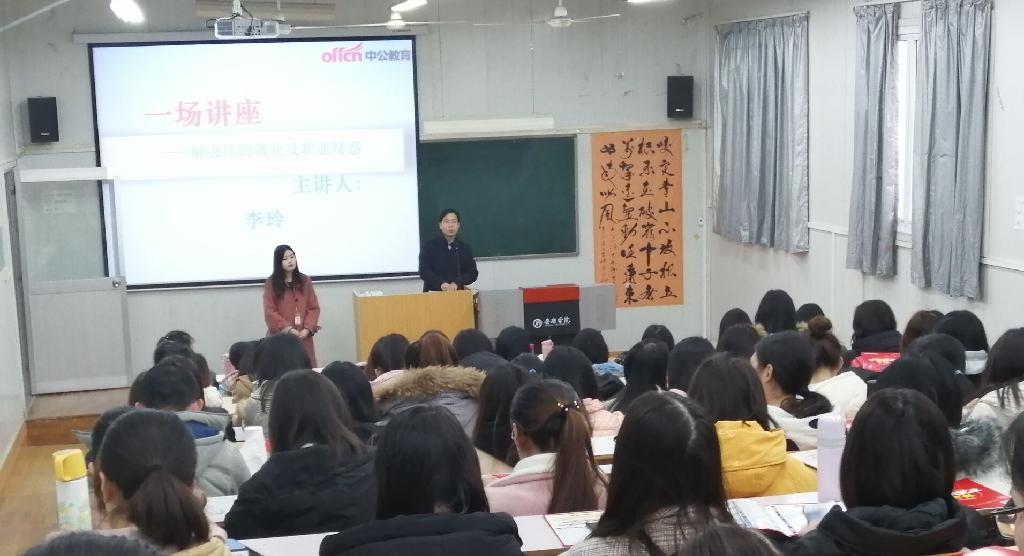 為幫助英語專業(yè)學(xué)生了解未來職業(yè),加強(qiáng)對行業(yè)崗位的認(rèn)知,12月5日下午,我院特邀安康中公教育聯(lián)合舉辦行業(yè)就業(yè)指導(dǎo)講座。講座在江南校區(qū)6407教室舉行,由副院長張哲華主持。