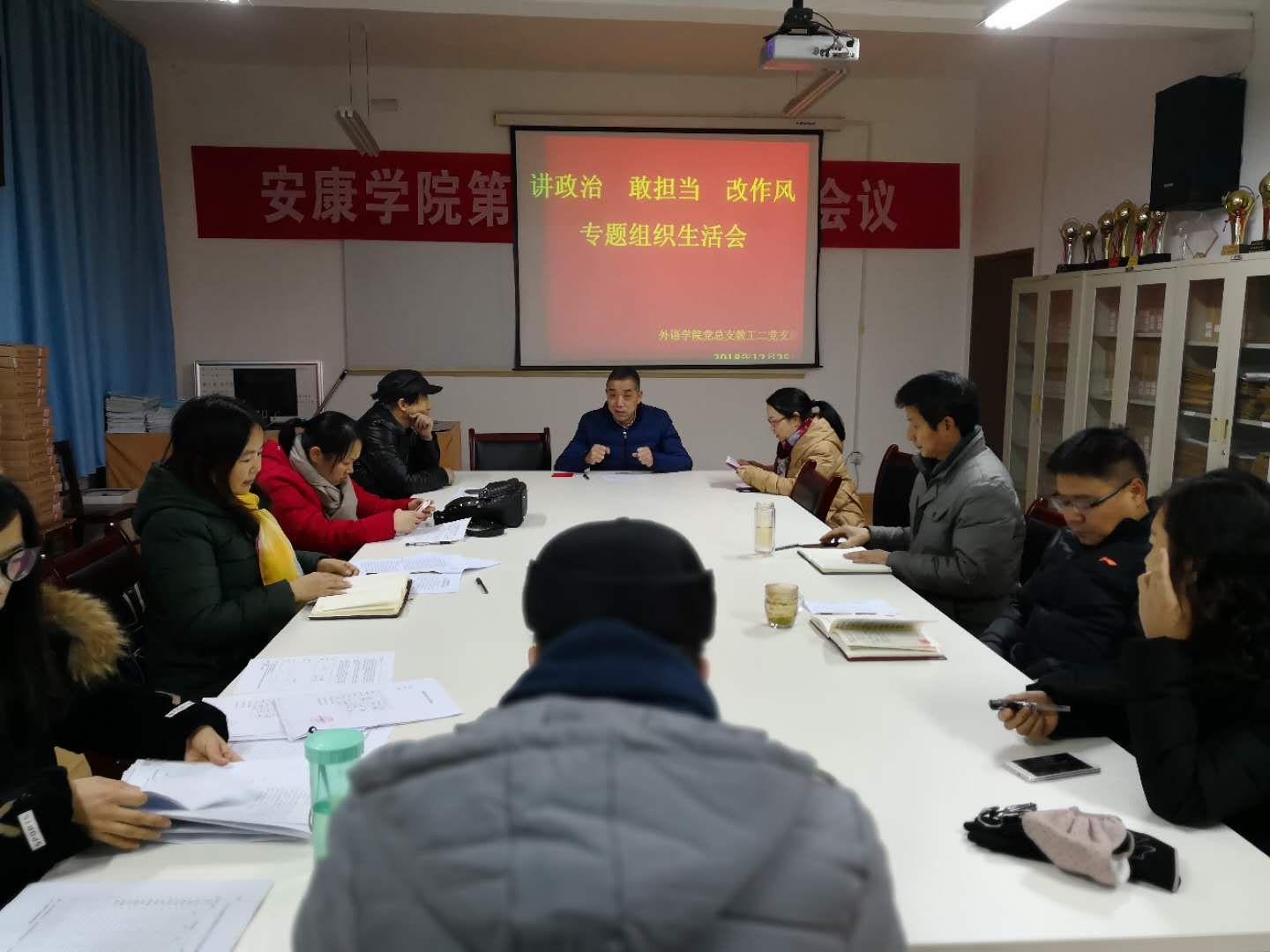 2018年12月25—26日,外語學院黨總支教工一、二支部及學生支部,分別以“講政治、敢擔當、改作風”為主題,組織召開黨組織生活會。會議由各支部書記主持。