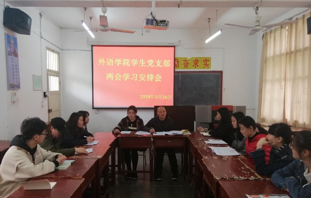 3月15日,舉世矚目的全國兩會勝利閉幕。3月16日,外語學院學生黨支部在6303教室召開大會,傳達學習兩會精神。會議由黨支部書記郝禮軍主持。外語學院學生黨員參加會議。