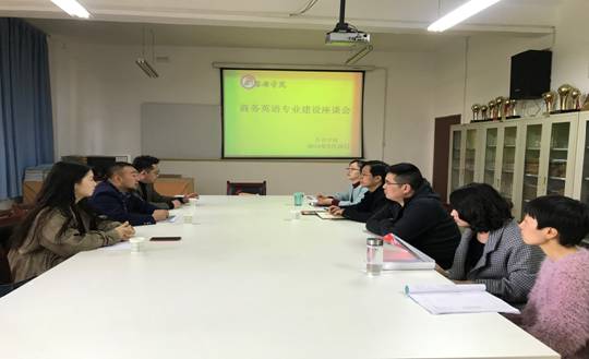 座談中,絲路城跨境電商學(xué)院執(zhí)行院長李元林首先介紹了絲路城控股集團現(xiàn)狀及發(fā)展,并就跨境電商學(xué)院的課程設(shè)置進行了詳細(xì)說明,提出以“雙資性”、“雙師型”為導(dǎo)向,服務(wù)于學(xué)校、學(xué)生、企業(yè)三方需求;以師資合作,校外實訓(xùn),定向委培,企業(yè)孵化等模式進行校企人才共建。張哲華向?qū)Ψ浇榻B了我院商務(wù)英語專業(yè)辦學(xué)概況及面臨的機遇與挑戰(zhàn),并就應(yīng)用型本科院校如何更精準(zhǔn)地為社會輸送人才,如何加快商務(wù)英語專業(yè)升級轉(zhuǎn)型,主動適應(yīng)企業(yè)需求等問題與企業(yè)代表進行了深入交流探討。最后,商務(wù)英語專業(yè)團隊的老師們紛紛就“雙師型”課程共建、師資培訓(xùn)、實習(xí)實訓(xùn)及企業(yè)定向委培精品班課程體系、合作模式進行了熱烈探討。