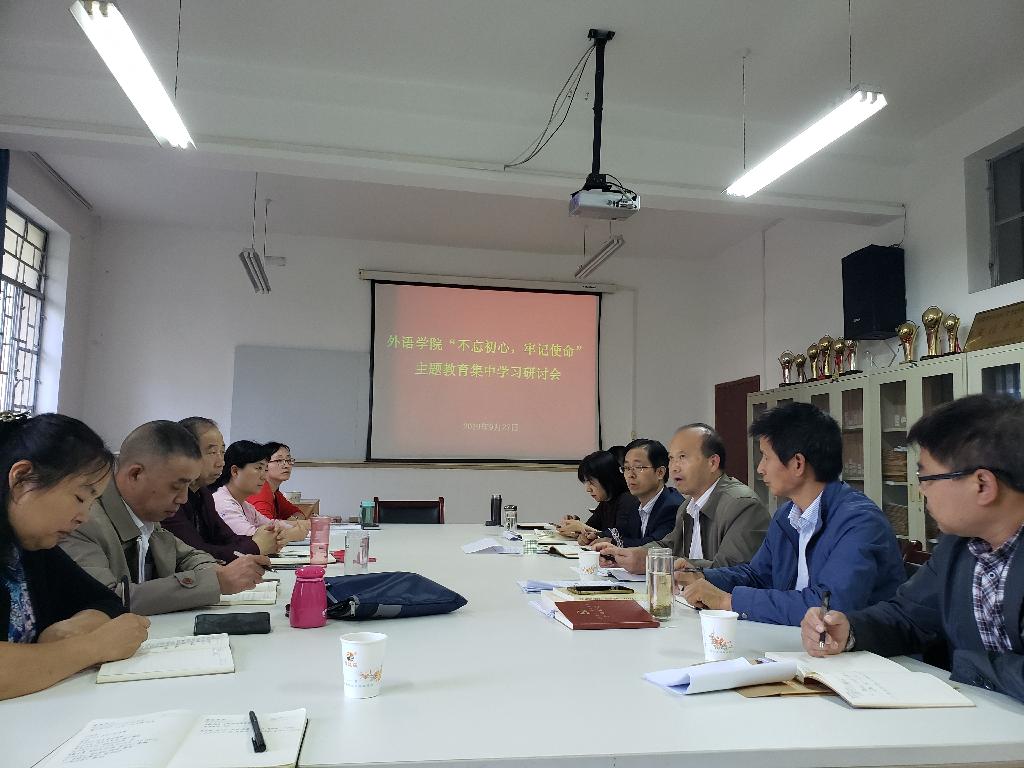 近日,按照外語學(xué)院“不忘初心,牢記使命”主題教育實施方案的安排,我院中心組成員扎實推進(jìn)“不忘初心,牢記使命”主題教育學(xué)習(xí)研討。
