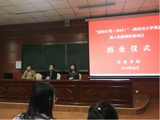 10月20日,國培計劃(2019)—陜西省新入職小學英語教師研修項目結業(yè)儀式在我校江南校區(qū)1018室舉行,副院長張哲華、胡衛(wèi)衛(wèi)出席,來自陜西省各地市的95名學員參加。