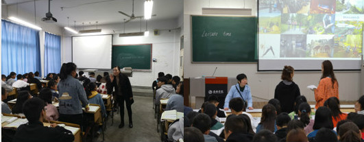 11月8日的教學(xué)活動分別觀摩了向艷麗講授的應(yīng)用數(shù)學(xué)19級《大學(xué)英語1》和張瑋講授的體育19級《大學(xué)英語1》。兩個課程分屬“普通本科”和“藝體本科”兩個類型,教學(xué)對象、教學(xué)目標(biāo)、教學(xué)設(shè)計(jì)、教學(xué)實(shí)施過程等各有差異。兩位教師緊扣當(dāng)日所授“課型特點(diǎn)”,分別以應(yīng)用型“聽說課程”的實(shí)踐性原則和藝體生“讀說課程”的實(shí)用性原則為指導(dǎo),有效完成課程目標(biāo),課堂氣氛活躍,學(xué)生互動有效,教學(xué)環(huán)節(jié)流暢,且思政元素的融入適當(dāng),學(xué)生反饋良好,是一次成功的示范課。