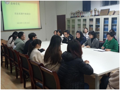 按照外語學(xué)院2019-2020學(xué)年第一學(xué)期期中自查安排,11月15日英語系召開了本學(xué)期期中學(xué)生座談會。副院長胡衛(wèi)衛(wèi)、英語系系主任王歡及英語系各年級各班學(xué)生代表參加了座談會。會議由系主任王歡主持。