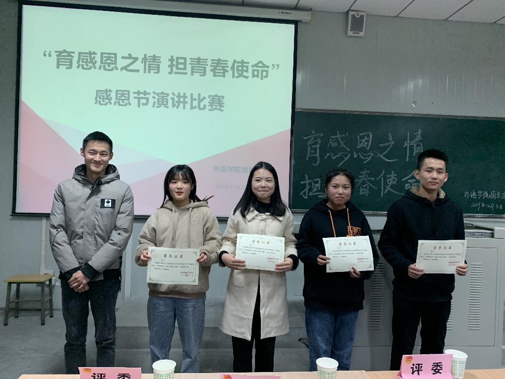 為弘揚(yáng)中華優(yōu)秀傳統(tǒng)美德,,幫助學(xué)生樹立感恩意識。外語學(xué)院團(tuán)總支學(xué)生會開展了感恩節(jié)系列演講比賽。