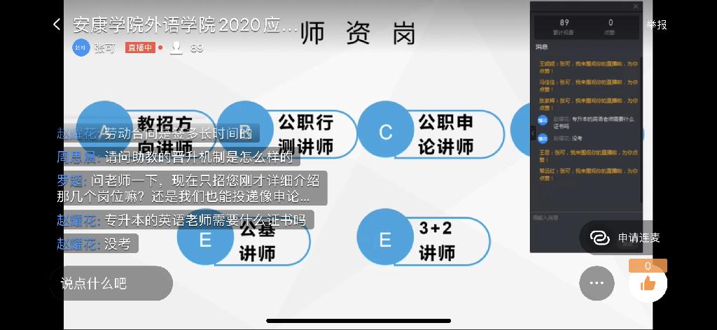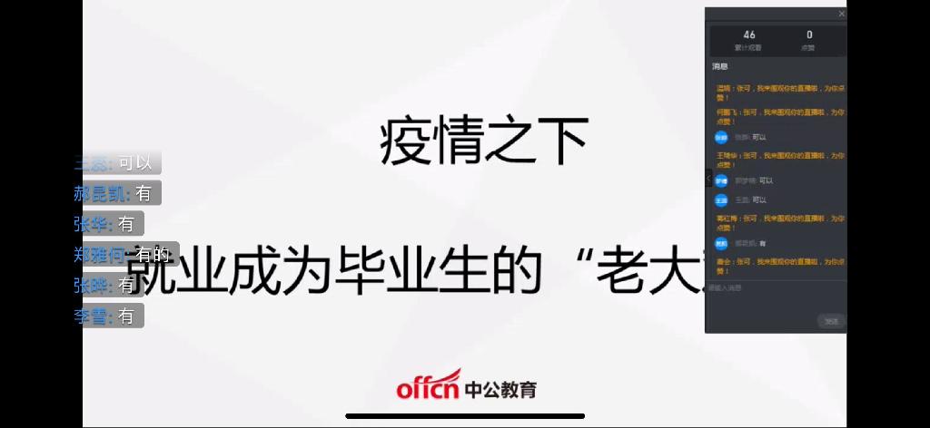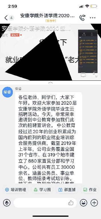 為有效應(yīng)對(duì)疫情帶來的沖擊與影響,進(jìn)一步促進(jìn)學(xué)院畢業(yè)生就業(yè)工作順利開展,確保2020屆畢業(yè)生工作實(shí)現(xiàn)“穩(wěn)中有進(jìn)”和“提質(zhì)增效”目標(biāo),外語學(xué)院于4月9日召開了2020屆畢業(yè)生線上專場(chǎng)招聘宣講會(huì),會(huì)議邀請(qǐng)了中公教育資深研究員張可為畢業(yè)生進(jìn)行云端招聘宣講。