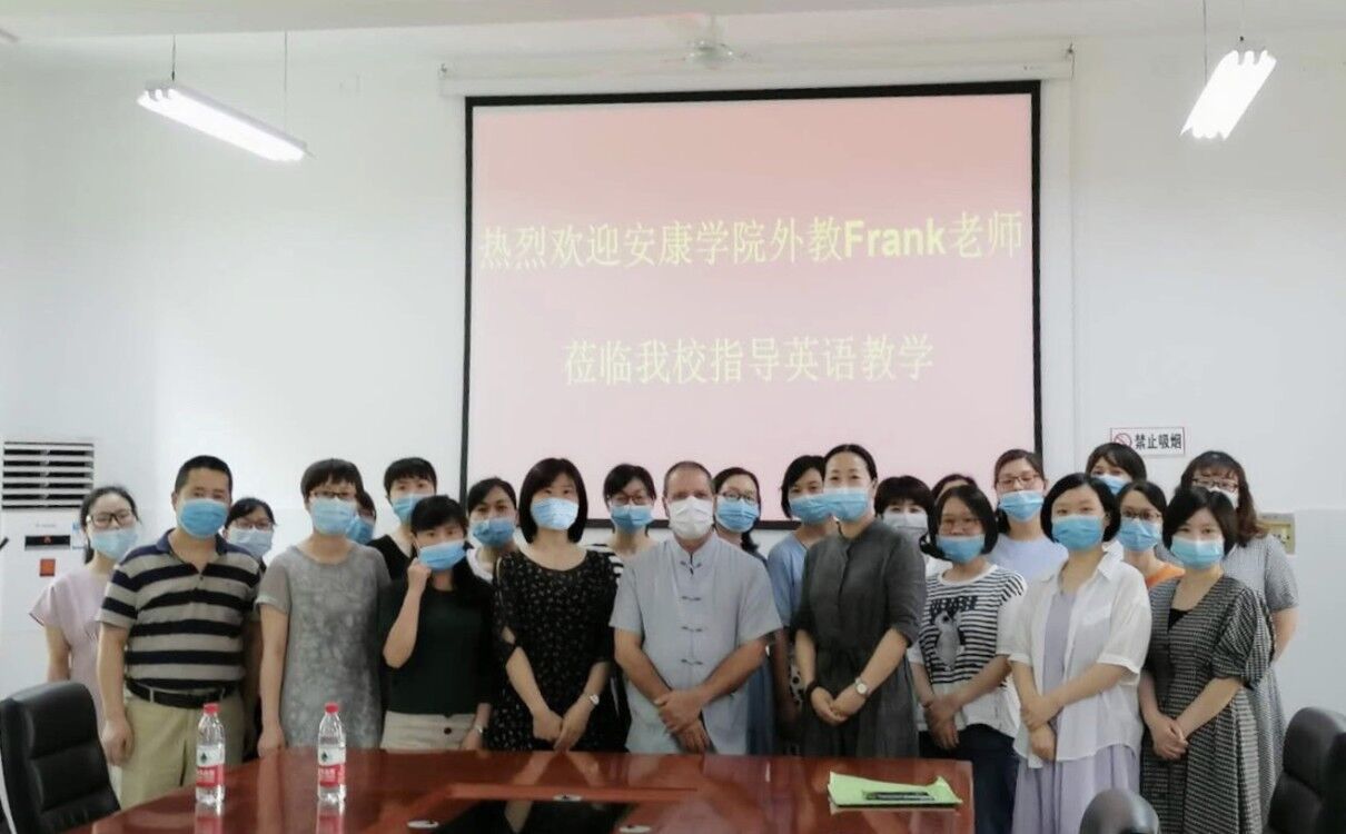 為服務(wù)地方外語(yǔ)基礎(chǔ)教育,加強(qiáng)校外外示范實(shí)踐基地建設(shè),深入校校合作推進(jìn)協(xié)同育人機(jī)制,6月15日,我校外籍教師Frank、外語(yǔ)學(xué)院副院長(zhǎng)胡衛(wèi)衛(wèi)、骨干教師周玫、孫衛(wèi)斌,應(yīng)邀參加漢濱高中西校區(qū)中學(xué)英語(yǔ)教學(xué)研討交流。漢濱高中西校區(qū)常務(wù)副校長(zhǎng)鄢麒麟出席,七年級(jí)部分學(xué)生和全體英語(yǔ)教師參加了此次活動(dòng)。