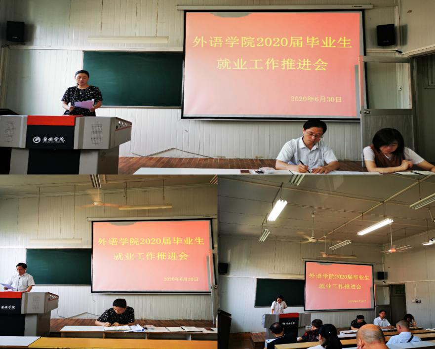 為進(jìn)一步做好外語學(xué)院學(xué)生就業(yè)指導(dǎo)與幫扶工作,建立和完善就業(yè)困難學(xué)生幫扶機(jī)制,夯實(shí)就業(yè)困難學(xué)生“一幫一”幫扶責(zé)任,我院于6月30日上午在6405教室召開了2020屆畢業(yè)生就業(yè)工作推進(jìn)會(huì),黨總支書記肖紅香,副院長張哲華、胡衛(wèi)衛(wèi),兩辦主任,輔導(dǎo)員以及全體就業(yè)幫扶老師參加了會(huì)議。會(huì)議由肖紅香主持。