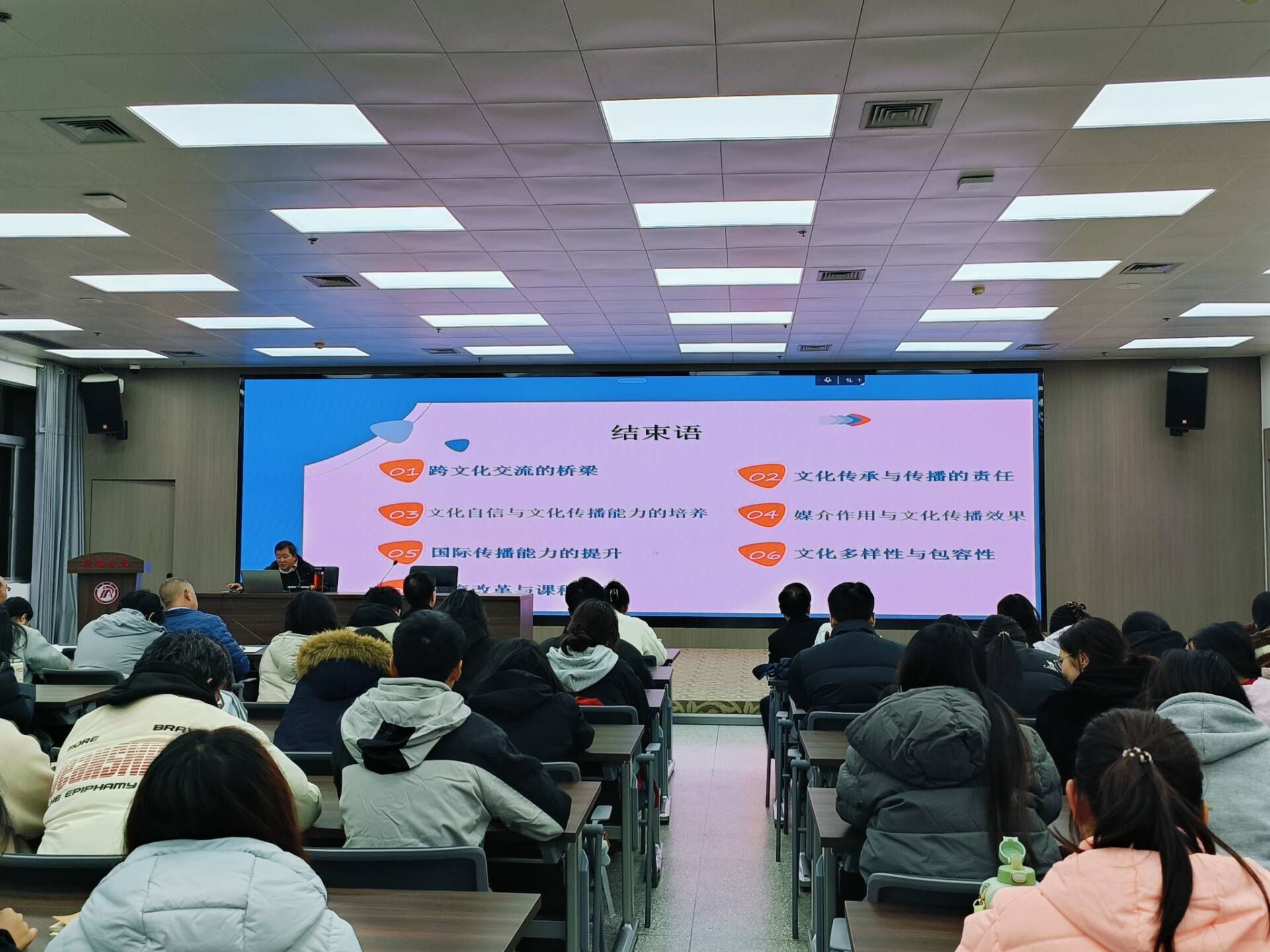 外語學院張哲華院長在總結發(fā)言中高度評價了趙教授關于外語學科專業(yè)發(fā)展方面的前沿見解與科學思路,鼓勵外院學子以此次講座為契機,深耕語言專業(yè)基礎,科學規(guī)劃職業(yè)路徑,在持續(xù)提升跨文化交際能力的過程中不斷拓展國際視野,努力成長為能夠“講好中國故事、傳播好中國聲音”的新時代復合型外語人才。