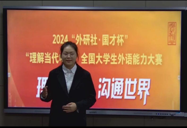 2024“外研社·國才杯”“理解當(dāng)代中國”全國大學(xué)生外語能力大賽以習(xí)近平新時代中國特色社會主義思想為指導(dǎo),深入貫徹黨的二十屆三中全會精神,落實(shí)立德樹人根本任務(wù),推動“三進(jìn)”工作縱深發(fā)展,為國家培養(yǎng)更多有家國情懷、有全球視野、有專業(yè)本領(lǐng)的高水平國際化人才,提高新時代我國國際傳播人才自主培養(yǎng)能力,服務(wù)國家參與全球治理、推動構(gòu)建人類命運(yùn)共同體。大賽賽題以“理解中國,溝通世界”為主題,引導(dǎo)選手深入領(lǐng)會習(xí)近平新時代中國特色社會主義思想的核心要義,理解中國之路、中國之治、中國之理,涵養(yǎng)家國情懷、全球視野,拓展知識廣度、思想深度,展現(xiàn)外語能力、跨文化能力、思辨能力、創(chuàng)新能力等綜合素養(yǎng)。外語學(xué)院積極響應(yīng)大賽號召,動員全校學(xué)生參與,外語學(xué)院的教師們也全程參與備賽指導(dǎo),從選題策劃、視頻制作到語言能力提升等方面給予了學(xué)生全面的幫助和支持,經(jīng)過校賽選拔,外語學(xué)院高圓、經(jīng)管學(xué)院王可心等同學(xué)脫穎而出,代表我校參加了陜西賽區(qū)決賽并取得良好效果。