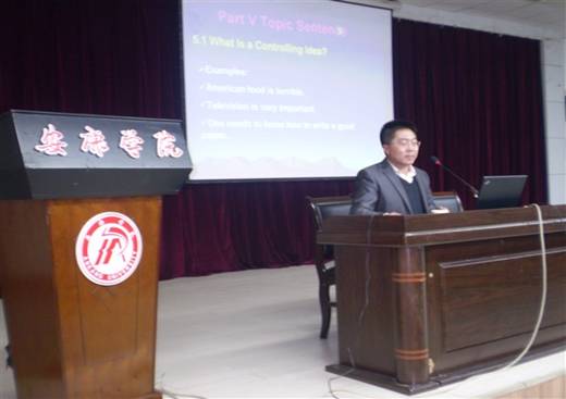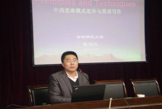 2010年11月7日晚7:30,應(yīng)外語系邀請(qǐng),吉林師范大學(xué)教授崔建立博士在圖書館六樓多功能廳為外語系師生作了題為《中西思維模式差異與英語寫作》的學(xué)術(shù)報(bào)告。