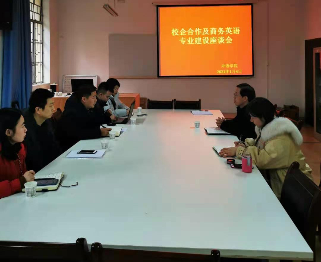 12月4日,外語學院舉辦校企合作及暨商務英語專業(yè)建設座談會,安康市毛絨玩具文創(chuàng)產(chǎn)業(yè)“五大中心”總經(jīng)理劉愚、總經(jīng)理助理薛鵬、運營經(jīng)理郝鑫、跨境電商項目經(jīng)理喬湖松等應邀參加,共商實習基地建設,企業(yè)項目進校園和教科研成果轉化等問題。學院副院長張哲華、胡衛(wèi)衛(wèi)等出席座談會。