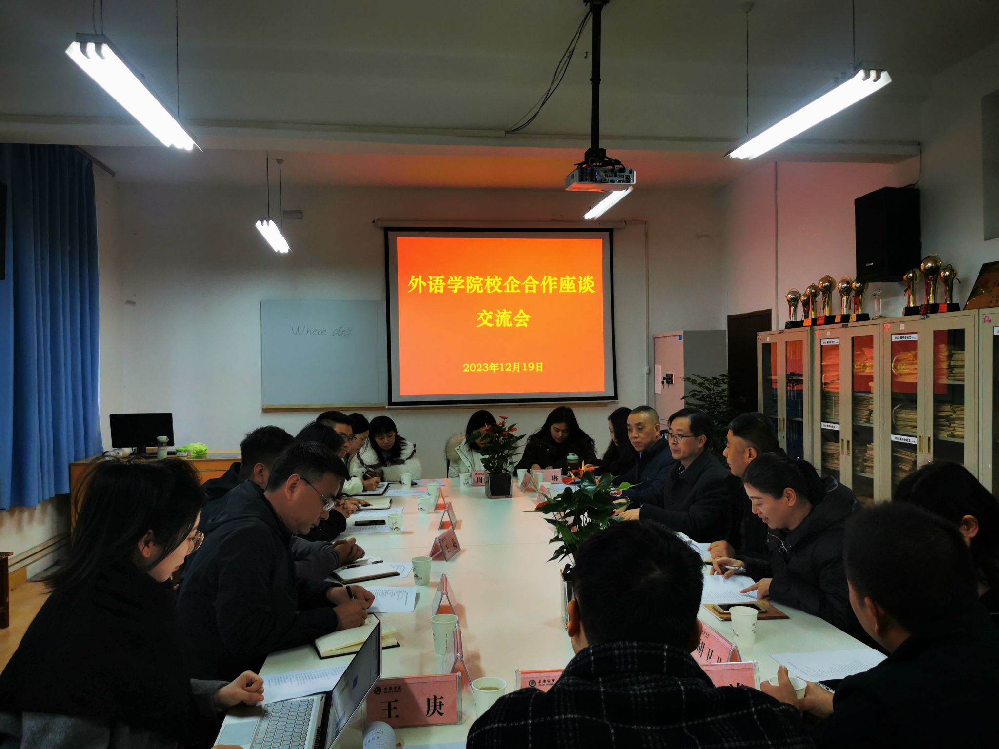 12月19日下午,柏潤集團(tuán)安康柏潤智能織造有限公司總經(jīng)理王亮一行8人到外語學(xué)院開展校企合作交流座談,學(xué)校招就處副處長程國棟應(yīng)邀參加,外語學(xué)院領(lǐng)導(dǎo)班子、兩辦主任、商務(wù)英語系主任及骨干教師出席了座談。座談會由黨總支書記肖紅香主持。
