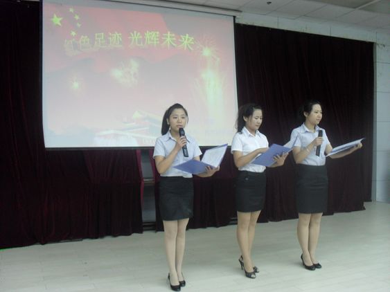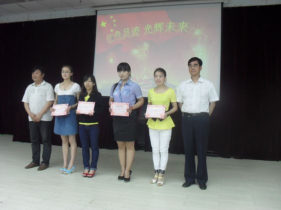 為迎接中國(guó)共產(chǎn)黨九十歲華誕,歌頌黨的偉大成就,增強(qiáng)同學(xué)們愛黨愛國(guó)之情,提高當(dāng)代大學(xué)生的政治覺悟,豐富學(xué)生的課余文化生活,5月8日晚,由學(xué)院團(tuán)委主辦,外語系和教科系承辦的”紅色足跡,光輝未來”詩歌朗誦大賽決賽在圖書館六樓報(bào)告廳舉行. 學(xué)院團(tuán)委書記魯延安、學(xué)工部副部長(zhǎng)鄭武生、教科系黨總支書記王輝、外語系黨總支書記李巖出席朗誦活動(dòng).