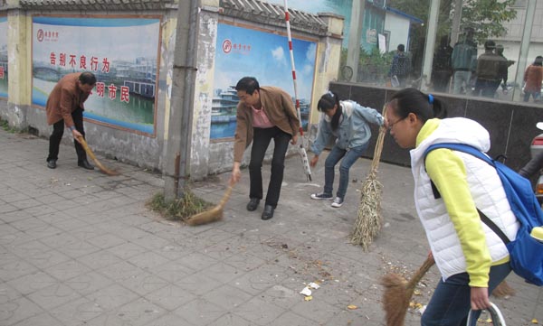 10月27日上午,外語系黨總支和機(jī)關(guān)二支部師生志愿者20余人開展了南環(huán)路包抓片區(qū)雙創(chuàng)義務(wù)清掃活動(dòng),學(xué)校雙創(chuàng)辦公室負(fù)責(zé)人參加了活動(dòng)。
