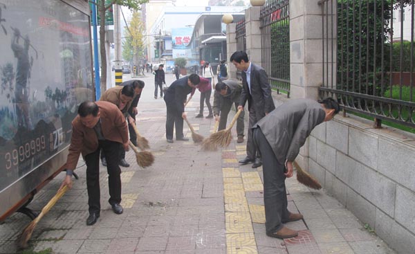 大家拿起掃帚、火鉗,沿著人行道開展統(tǒng)一清掃活動(dòng),撿拾行道樹基綠化叢中的煙頭、紙屑和雜物,拔除墻邊的雜草,清潔人行道上的垃圾,撕扯張貼在電線桿、臨街圍墻上的小廣告,擺正了亂停亂放的電動(dòng)車車和自行車,對(duì)個(gè)別商戶“門前四包”不力、衛(wèi)生較差的進(jìn)行了提醒。