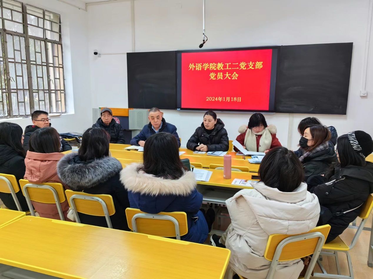 2024年1月18日下午,外語學(xué)院教工二黨支部在6107教室召開黨員大會(huì),支部全體黨員同志參加,會(huì)議由黨支部書記劉子富主持。